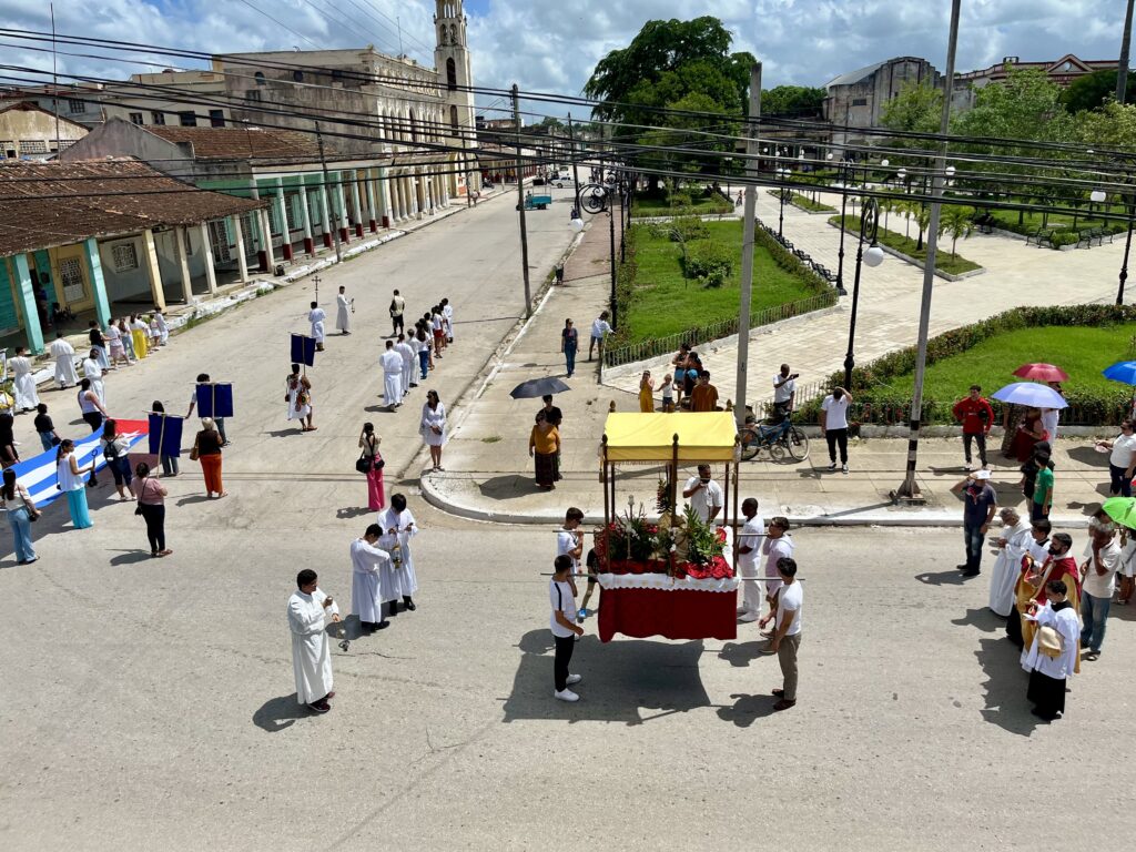 Le 22 juin jour de la fête de Saint Sacrement, l’église est comble. En effet à l’issue de la messe le Saint Sacrement ira en procession, bannières en tête et dans un cumulonimbus d’encens, faire le tour de la place principale pour terminer sa route au pied du clocher de l’église en travaux. Alors pour quelques instants les voies du chœur, les chants d’actions de grâce s’estompent et tout le cortège, à genou, adore et offre en silence leurs intentions. Le temps semble comme suspendu, quiet, recueilli. Puis la litanie rompt le silence, la bénédiction finale dite et Jésus Hostie dans sa lunule retourne accompagnée des servant dans le tabernacle.