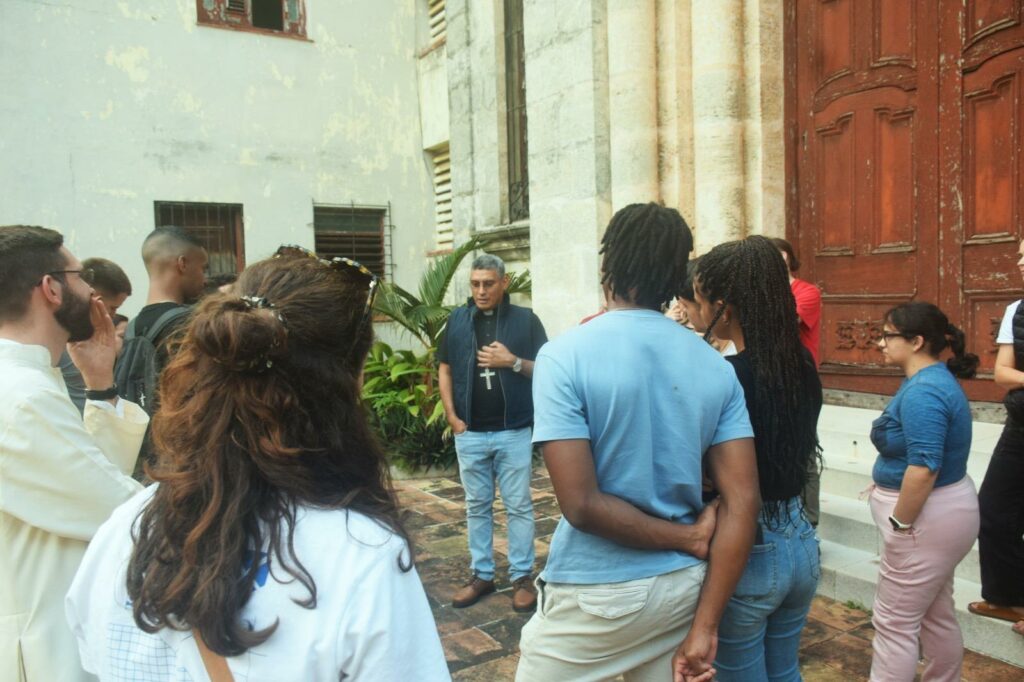 Après l’installation de chacun dans la maison, le groupe a rencontré Monseigneur Eloy Domínguez Martínez. Ce temps d’échange a permis d’aborder la diversité religieuse à Cuba, mais aussi de réfléchir à la place et à l’espérance des jeunes dans un pays où les défis du quotidien sont nombreux.