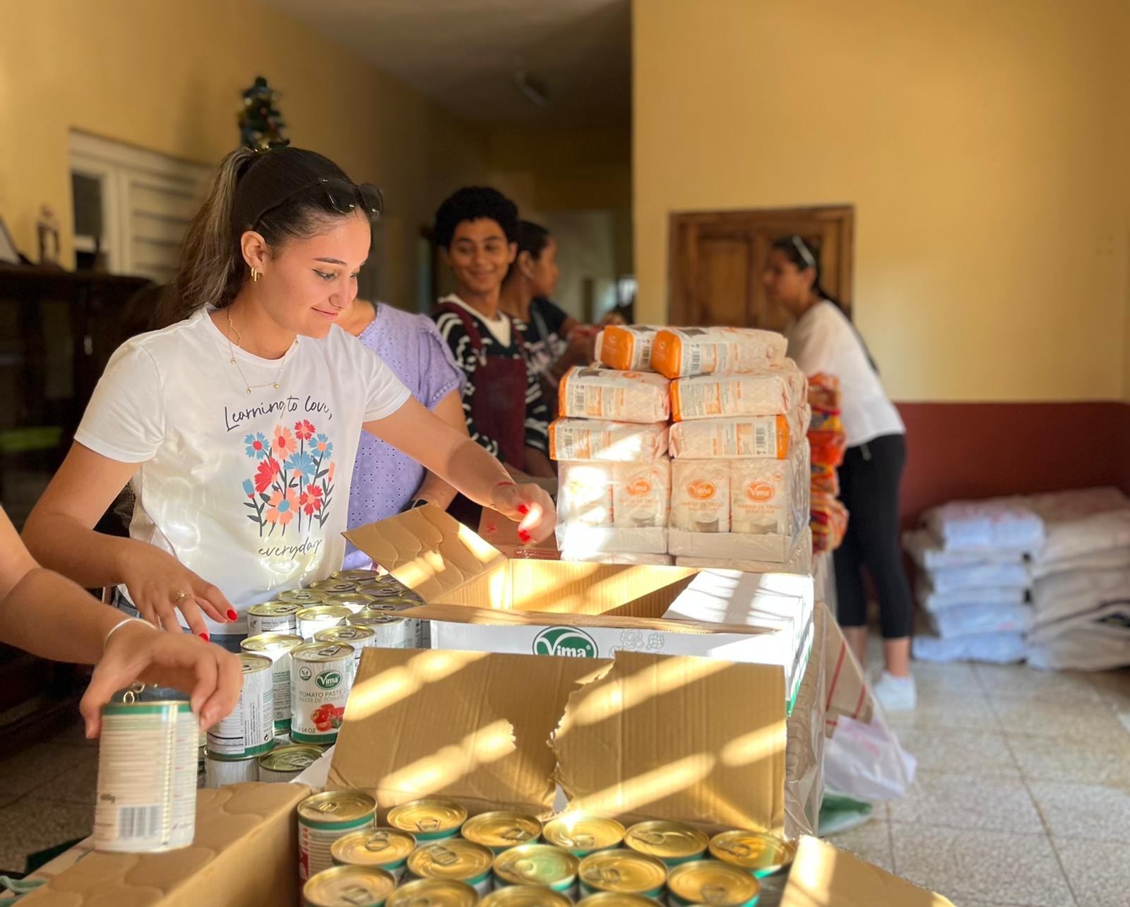 After several weeks of logistics to gather all these supplies, it was the mission’s young people who got to work assembling the jabas. The boarding school refectory was adapted for the occasion, and the young people from Cienfuegos joined the Placetas team on the Saturday before Christmas. Over the course of a full day, a true hive of activity took shape to prepare, weigh, count, and distribute the bags, right up to the final stage: personalizing each parcel!