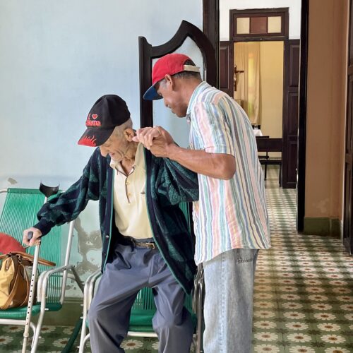 El Asilo es un lugar vivo y abierto: voluntarios vienen con frecuencia a pasar tiempo con los ancianos, compartir conocimientos, ayudar en la cocina o brindar algún servicio, como cortar el pelo.