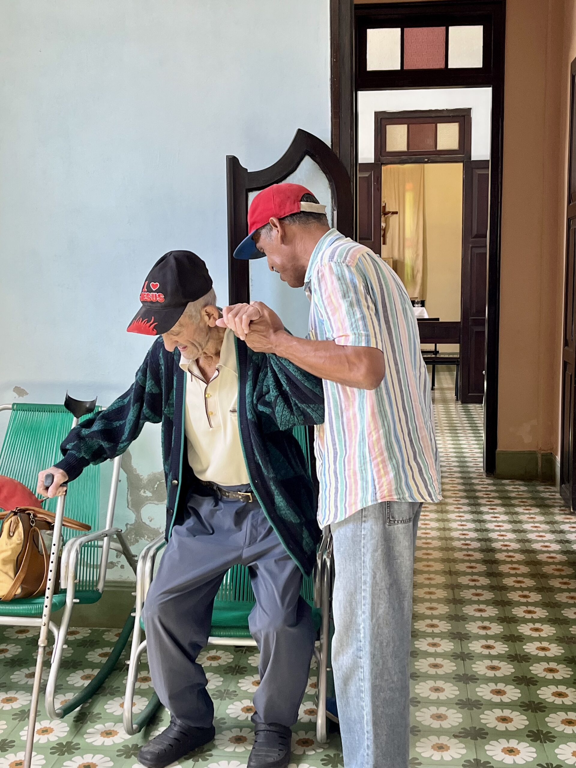 El Asilo es un lugar vivo y abierto: voluntarios vienen con frecuencia a pasar tiempo con los ancianos, compartir conocimientos, ayudar en la cocina o brindar algún servicio, como cortar el pelo.